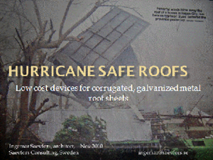 The hurricanes often destroy poor people’s homes. The roofs built of corrugated sheets, almost flat - just to save on materials - but making them fly like aeroplane wings. A simple spring-loaded device to partially open the roof could neutralize the worst lift off effect.