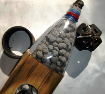 "PetCrown", a new connector design, uses plastic bottle cut-offs to contain the mortar and narrow the ends of the space frame poles so as to converge up to 8 poles into one moment free point.
